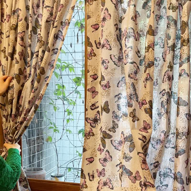 Rideau rustique en coton et lin avec imprimé papillon