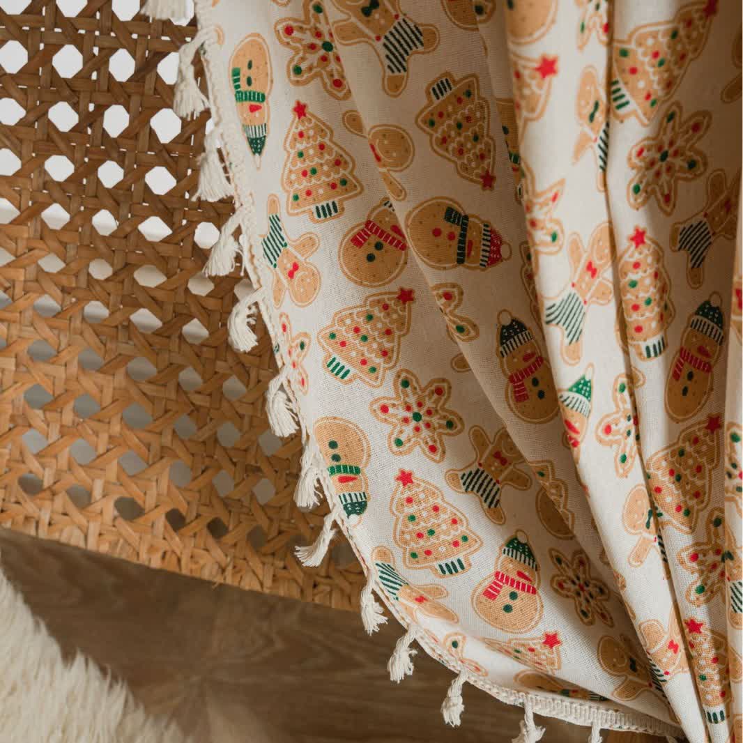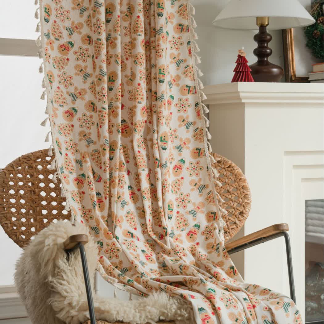 Présentant d'adorables motifs de biscuits de Noël comme des bonhommes de neige et des sapins de Noël, ce rideau ajoute une touche ludique et festive à n'importe quelle pièce - parfait pour les rassemblements festifs ou la joie quotidienne. Le tissu semi-ombragé de haute qualité filtre la lumière naturelle tout en préservant l'intimité. Cela crée une atmosphère chaleureuse sans compromettre la luminosité.