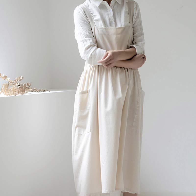 Conception simple et pratique. La conception du dos croisé empêche le tablier de glisser de l'épaule. Deux grandes poches avant rendent le tablier encore plus pratique. Il est facile à mettre et à enlever et est confortable et pratique. Convient pour la cuisine, le café, le bar et le restaurant unique. Conception des boutons.
