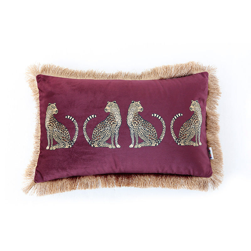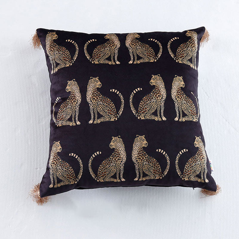 Taie d'oreiller et noyau d'oreiller en daim avec imprimé léopard et pompon