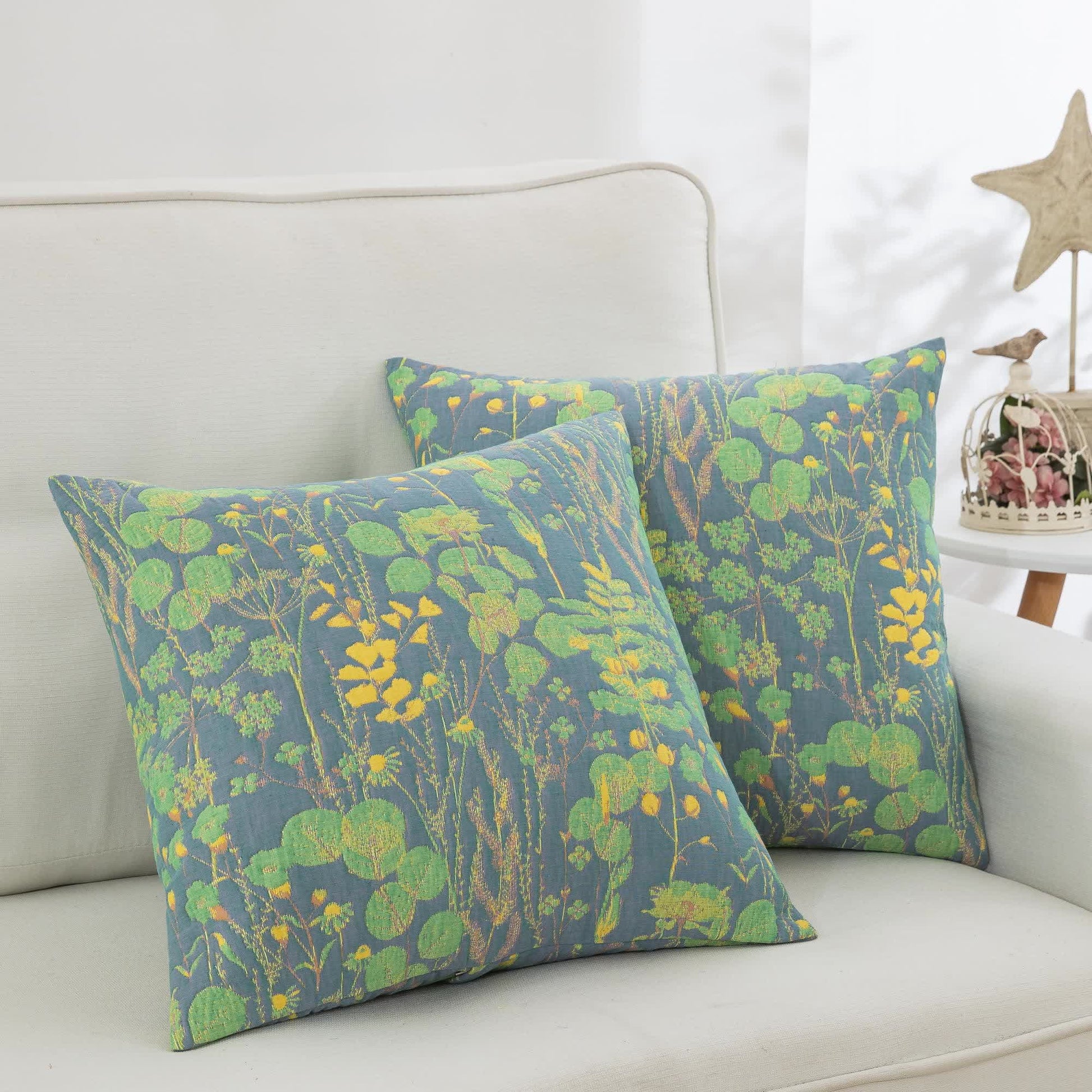 Ces taies d'oreiller 100 % coton avec trois couches de gaze sont douces, légères et hypoallergéniques – parfaites pour tous les types de peau. Le motif d'étang de lotus tissé jacquard ajoute une texture délicate et de la profondeur à votre chambre, enrichissant l'esthétique.