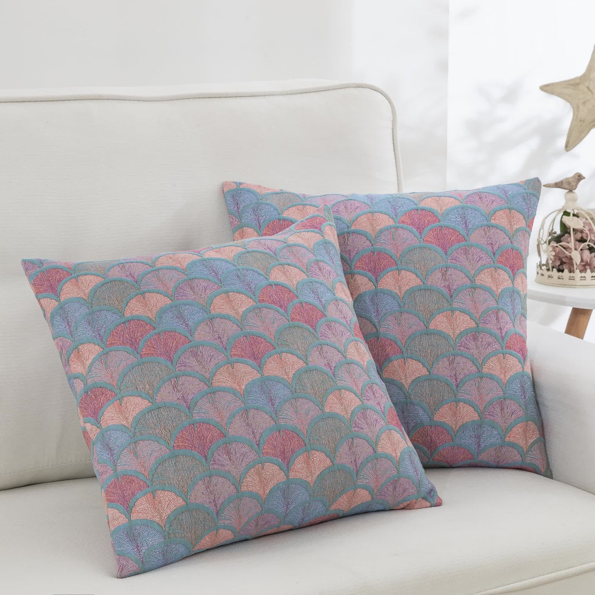 Taies d'oreiller en gaze de coton jacquard motif écailles de poisson (2 pièces)