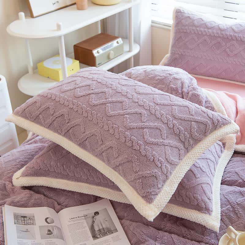 Taies d'oreiller en polaire douce avec structure en losange (2 pièces)