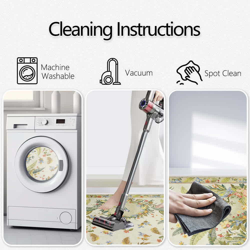 Tapis antidérapant avec motif de fleurs et d'oiseaux