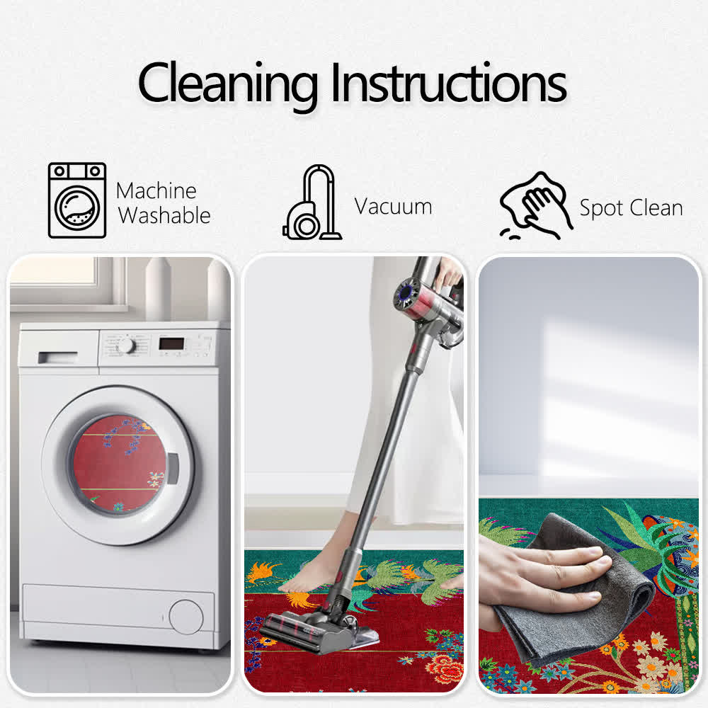 Tapis antidérapant d'intérieur/extérieur à motif floral rétro