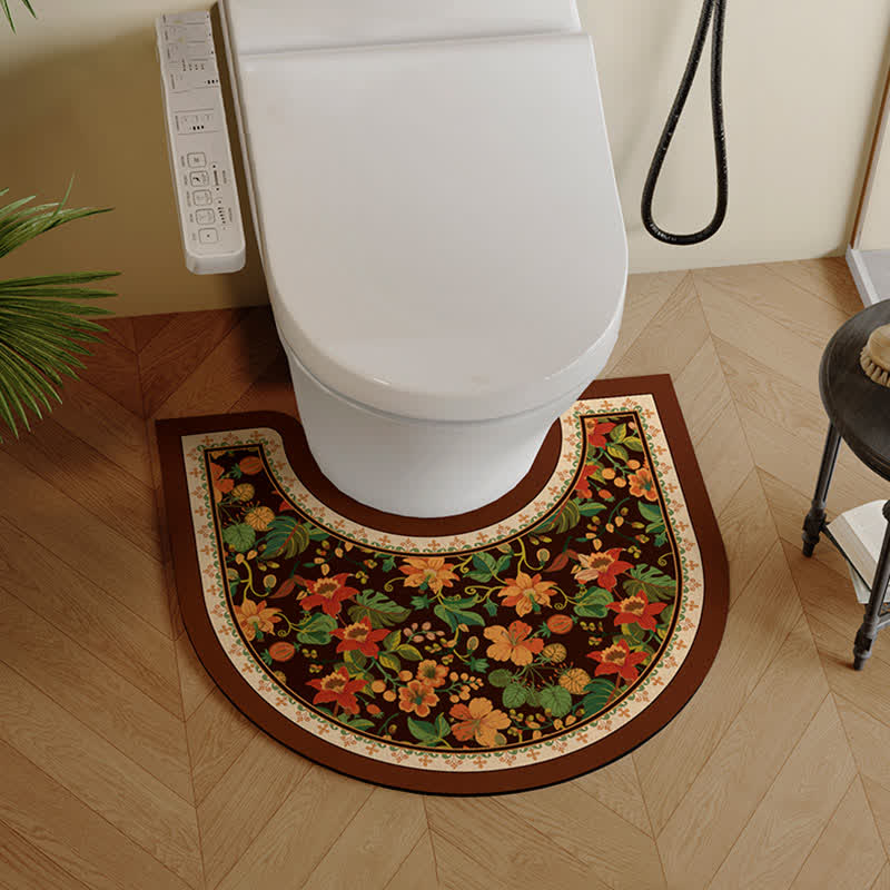 Tapis de bain antidérapant en forme de U avec motif floral vintage
