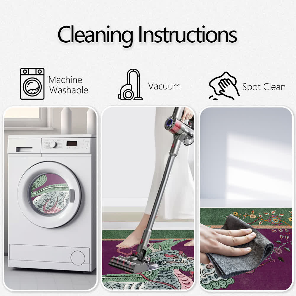 Ce tapis est fait de matériaux doux et agréables pour la peau et procure une sensation agréable sous les pieds. Les déversements et les taches ne posent aucun problème ! Il suffit de le mettre dans la machine à laver et de le nettoyer facilement. Le motif sophistiqué Kirin et les couleurs d'inspiration vintage conviennent aussi bien aux intérieurs modernes que classiques.