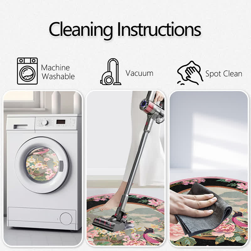Tapis rond antidérapant avec motif de fleurs et d'oiseaux
