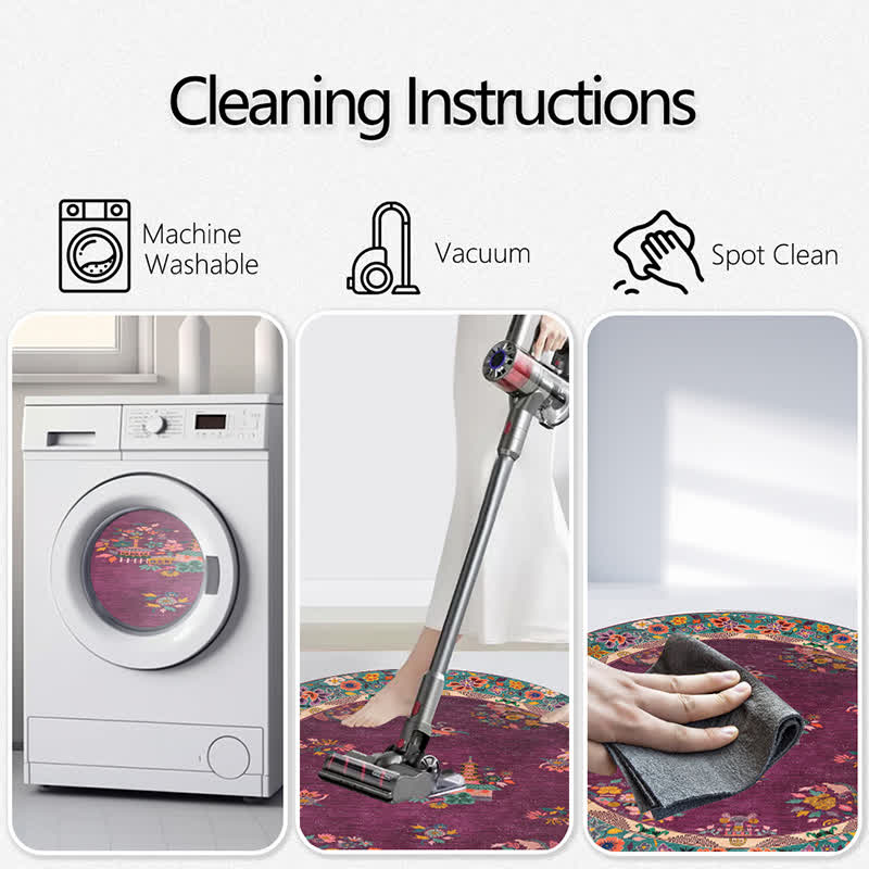 Tapis rond vintage d'intérieur/extérieur à motif floral