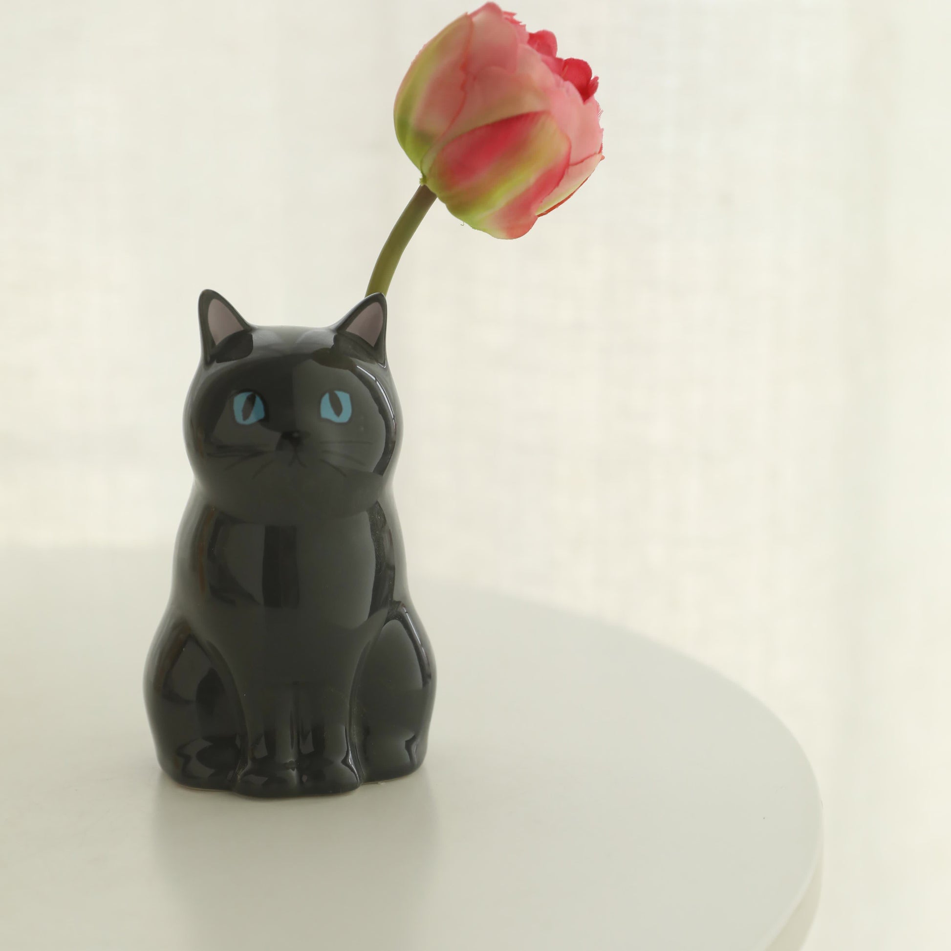 Vase porte-crayon en céramique peint à la main en forme de chat